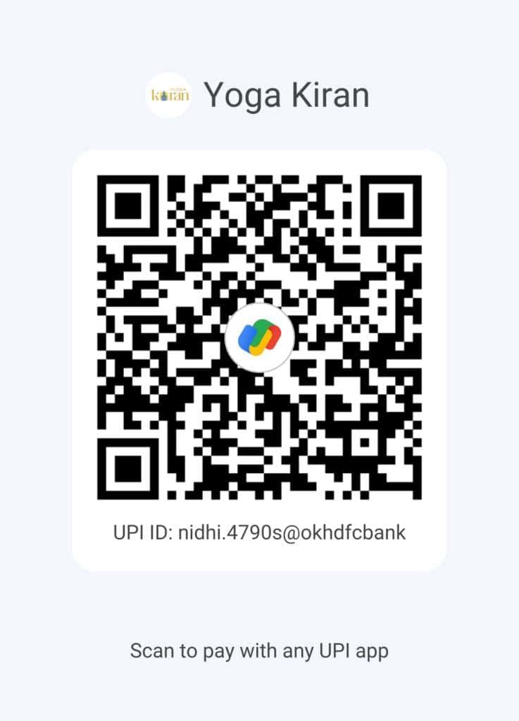 - Membership Discount – INR 1500/- : If you are an existing Yoga Kiran member. Pay via UPI or Bank Transfer